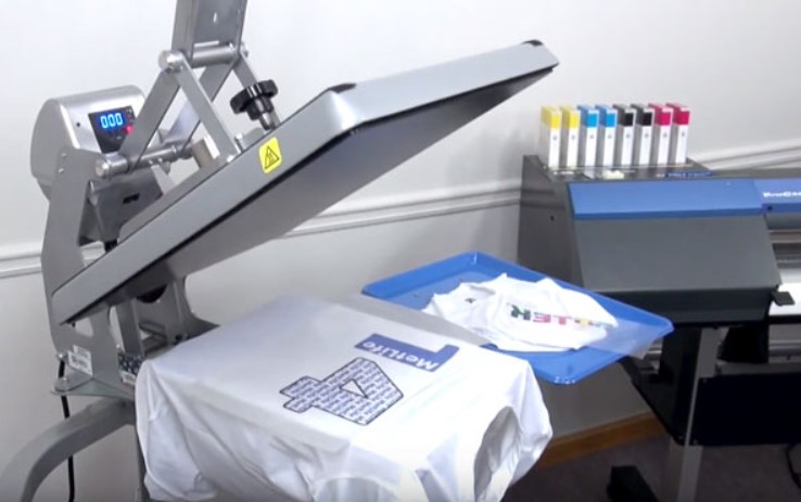 In chuyển nhiệt là máy in hình lên giấy film chuyên dụng, sau đó đặt giấy in này lên vải, ép qua nhiệt, hình in sẽ chuyển từ film sang vải.